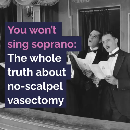 No-scalpel vasectomy is quick, safe and effective. You’ll need to take things easy for a few days afterwards, swap to snug underwear, and remember to send in that all-important semen sample. But your sex life, masculinity, and vocal pitch will remain gloriously unchanged.
